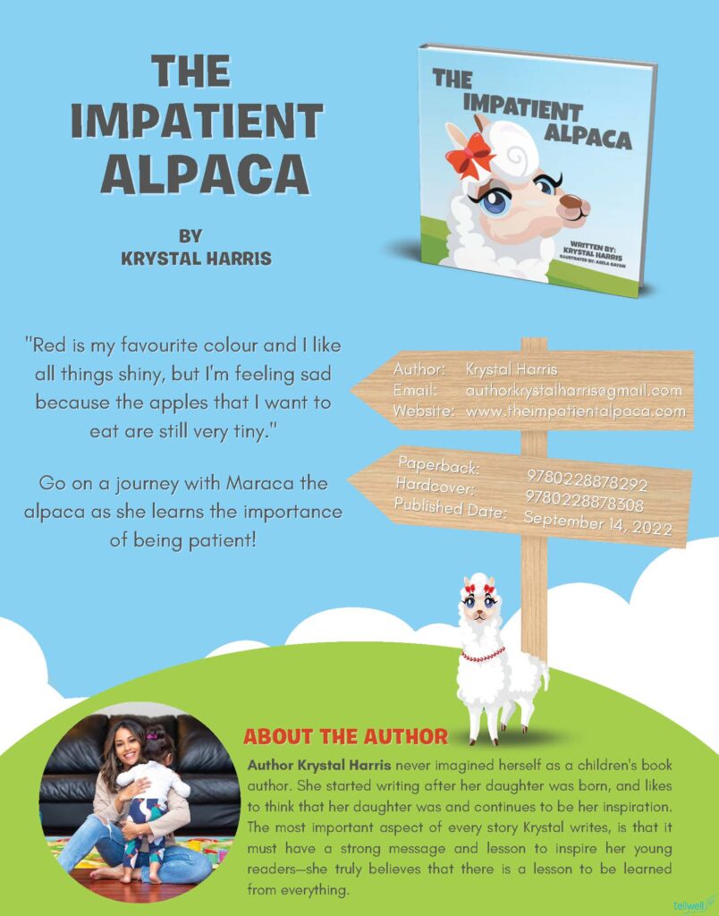The Impatient Alpaca stars a young and determined alpaca named Maraca, who learns (the hard way) about the importance of being patient.